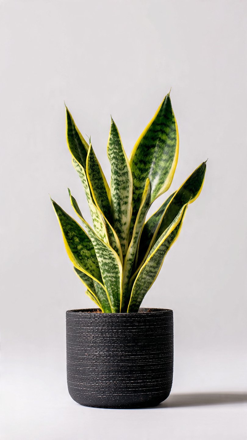 The Snake Plant (Dracaena trifasciata), also commonly known as Mother-in-Law’s Tongue, is a popular indoor plant valued for its striking vertical leaves and easy care. The thick, stiff leaves grow upright and feature attractive variegation in shades of dark green, light green, and sometimes yellow edges depending on the variety.
